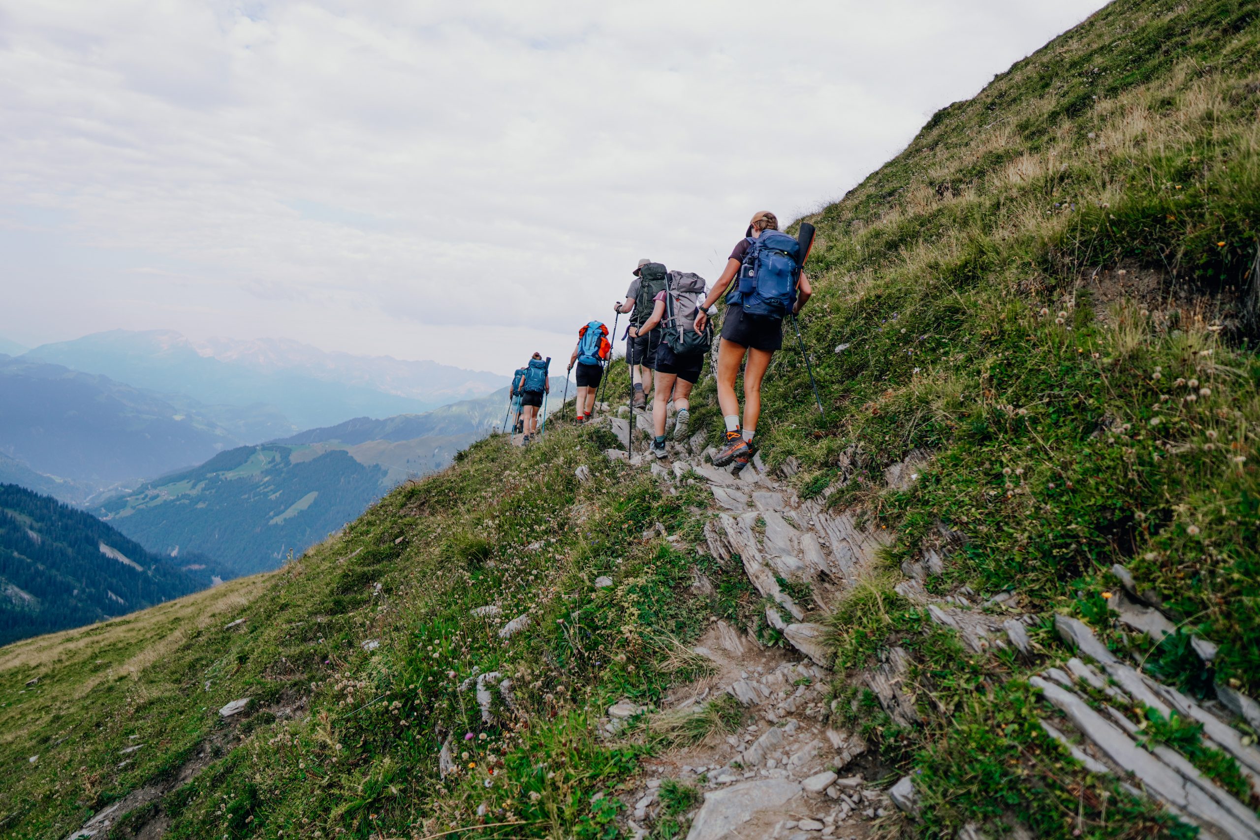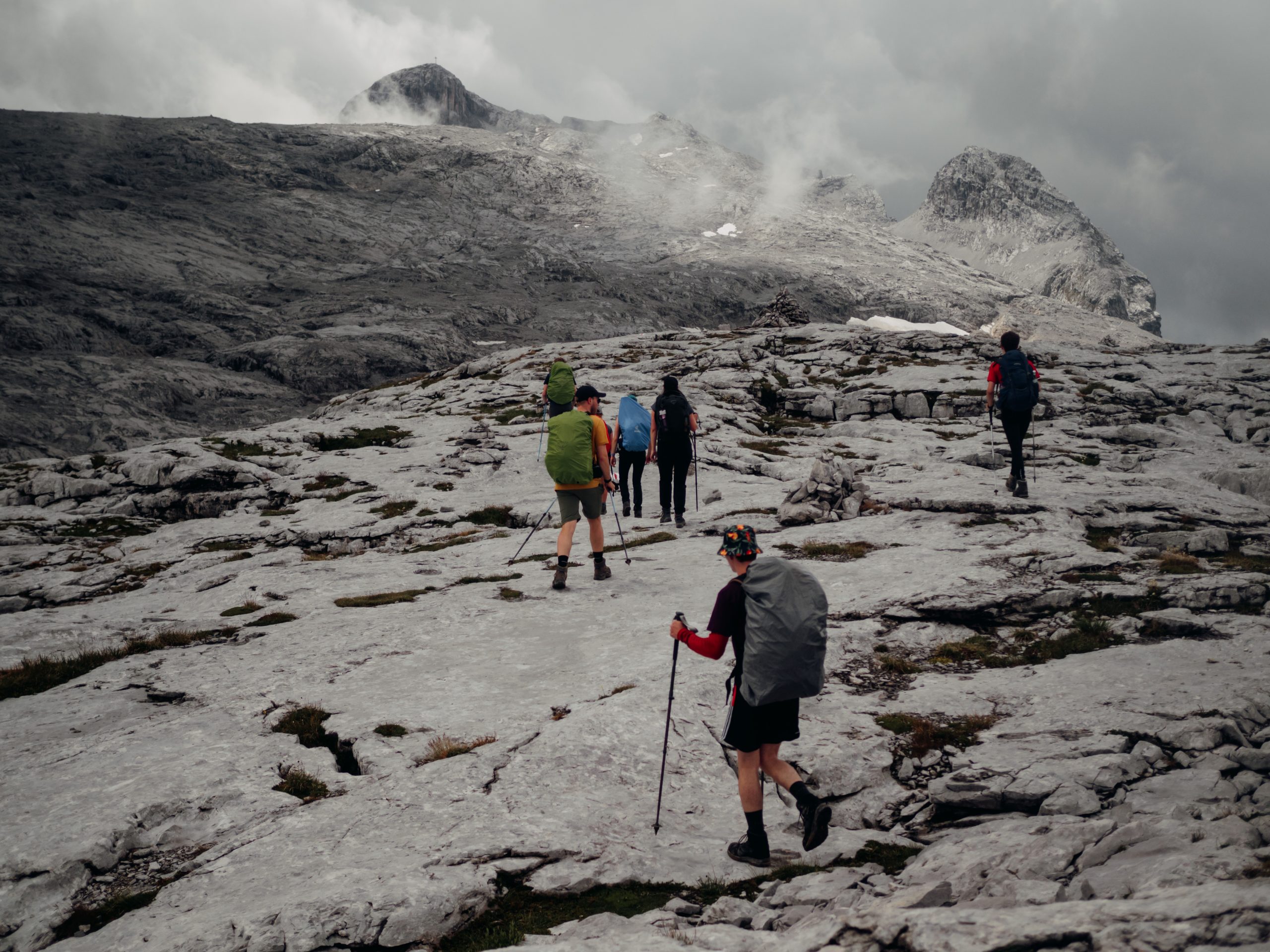 De Lunersee is mooi, maar nog zoveel mooier van bovenaf. Vandaag staat in het teken van kennismaken met het materiaal, voetplaatsing en één worden met het terrein. Wij zijn altijd beschikbaar voor vragen, en beantwoorden deze graag lopende weg. Want meters maken doen we zeker op deze eerste dag! We pakken de berglift richting ons startpunt van waaruit we over lieflijke bergpaden onze weg vinden richting de Heinrich Hueter hutte, prachtig omgeven door groene bergweiden met uitstekende rotspartijen op de achtergrond.